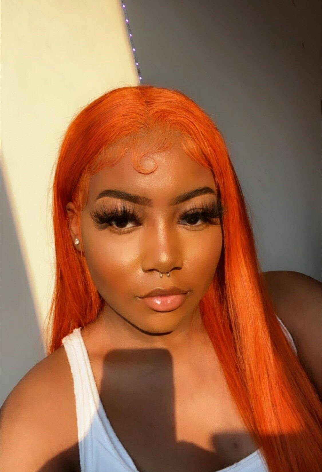 Bright Orange Straight Hair 13x4 Lace Front Wigs Remy Hair